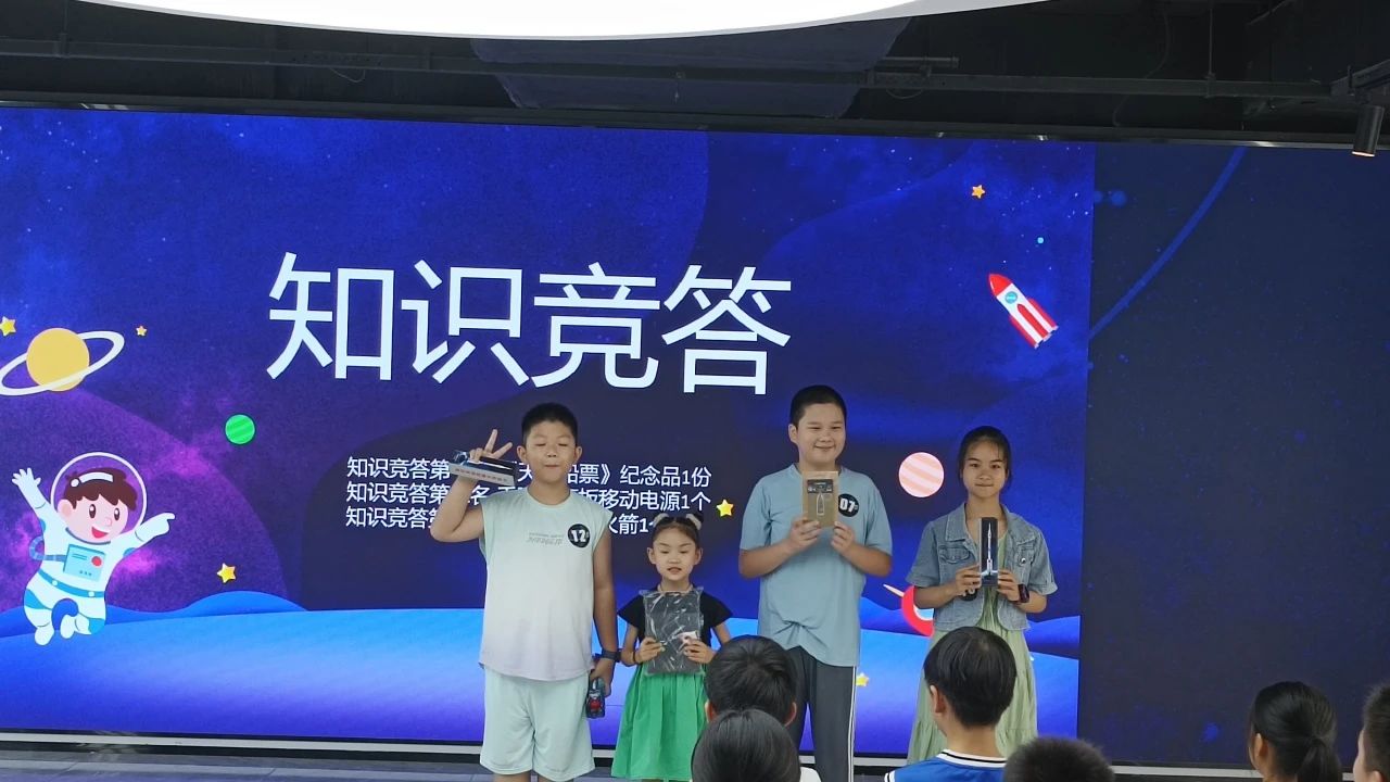为了激发孩子们的学习兴趣,艾迪讯还特别设置了知识竞答环节。题目广泛覆盖天文、地理、航天等多个领域,孩子们踊跃参与,竞相展现自己的智慧与才华。最终,四名表现出色的小朋友脱颖而出,赢得了精美的礼品,其中第一名更是获得了意义非凡的《天河船票》纪念品,这份礼物不仅是对孩子们努力的肯定,更是对他们未来探索宇宙梦想的鼓励与期许。